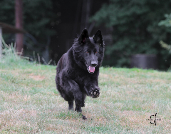 Groß,mittelkräftig,etwas betont gestreckt,sehr gut geformter Kopf,guter Widerrist,gerader Rücken,genügend lange,etwas abschüssige Kruppe,vorne gut,in der Hinterhand sehr gut gewinkelt,etwas tiefe,etwas kurze Unterbrust,bei gutem Nachschub sollte der Vortritt etwas freier sein.Lebhaftes,sicheres Wesen,TSB ausgeprägt.
