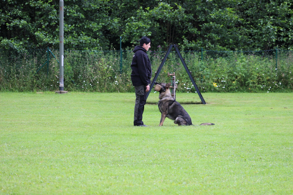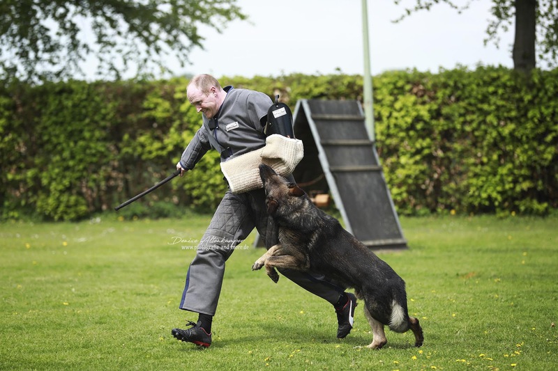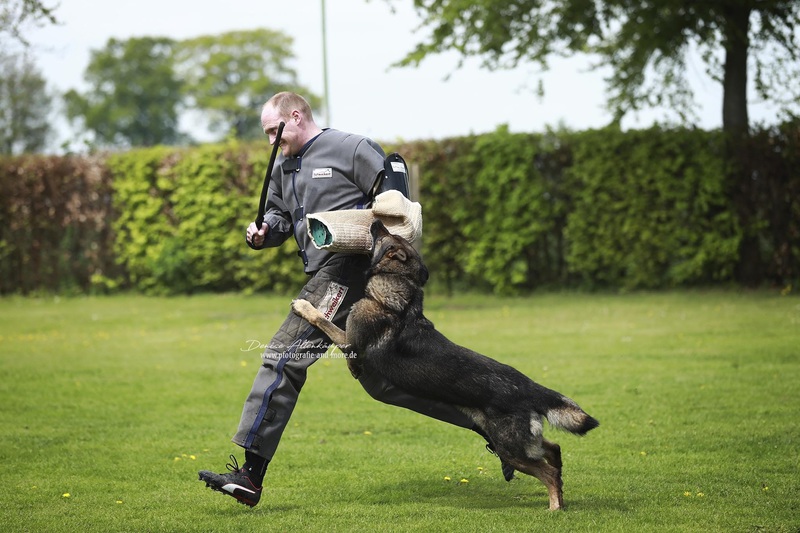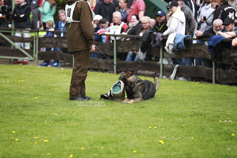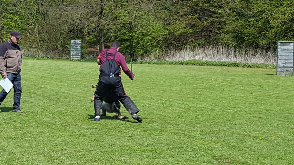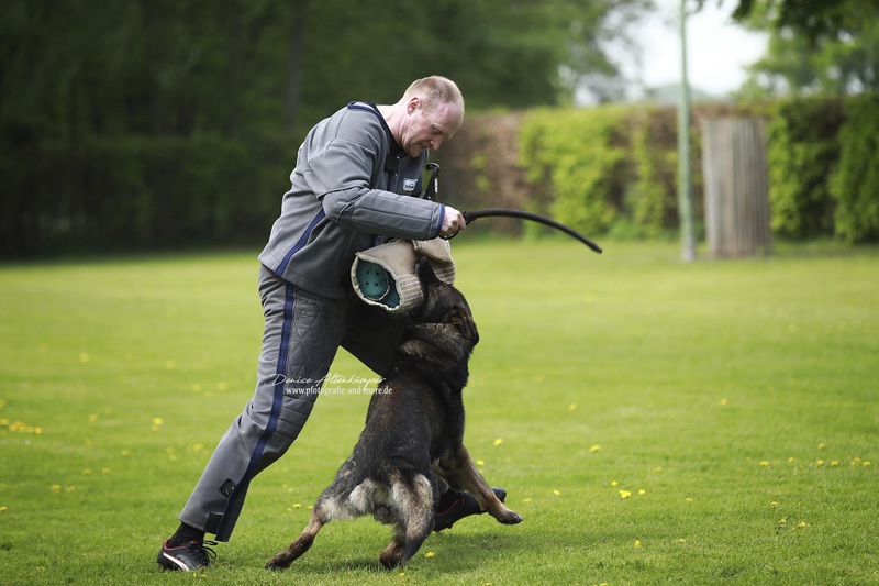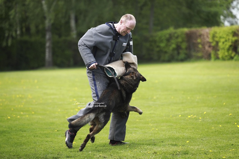 Duncan ist ein sehr führerharter, dominanter und sehr ernster Rüde mit außergewöhnlichen Angriffen und sehr harten, ruhigen und vollen Griffen. Er geht mit sehr viel Wucht und Ernsthaftigkeit in den Helfer. Das Stellen und Verbellen ist nicht beutebezogen, sondern enorme Aggression. Seine Belastbarkeit ist enorm! Hervorzuheben ist auch seine super Beweglichkeit und das enorme Selbstbewusstsein.